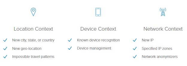 Adaptive Multi Factor Authentication – ההזדהות הכפולה של Okta בשילוב של Machine Learning & AI המשמש לזיהוי אנומליה של המשתמש לפי context.